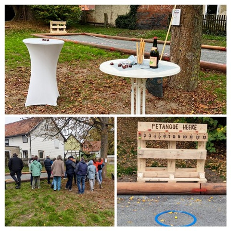 Am 12.10.2025 war es endlich soweit. Nach einjähriger Planungs- und Umsetzungszeit wurde der neue Bouleplatz am langen Phal in Heere mit einer kleinen Feierstunde eröffnet. Entstanden war die Idee im Rahmen der sozialen Dorfentwicklung (SoDe) bereits 2019. Anfang 2024 wurde es dann konkret. Nach Erstellung der Baupläne und Kostenkalkulation durch das SoDe Koordinationsteam wurde daraus ein Antrag auf Förderung als Kleinstprojekt erstellt. Nach Zustimmung des Gemeinderates wurde dieser anschließend beim Amt für regionale Landesentwicklung (ArL) eingereicht. Nach der Genehmigung wurden Material und Maschinen bestellt und an 2 Wochenenden im August mit viel Engagement der fleißigen Helfer entstand schließlich der Heerer Bouleplatz.
